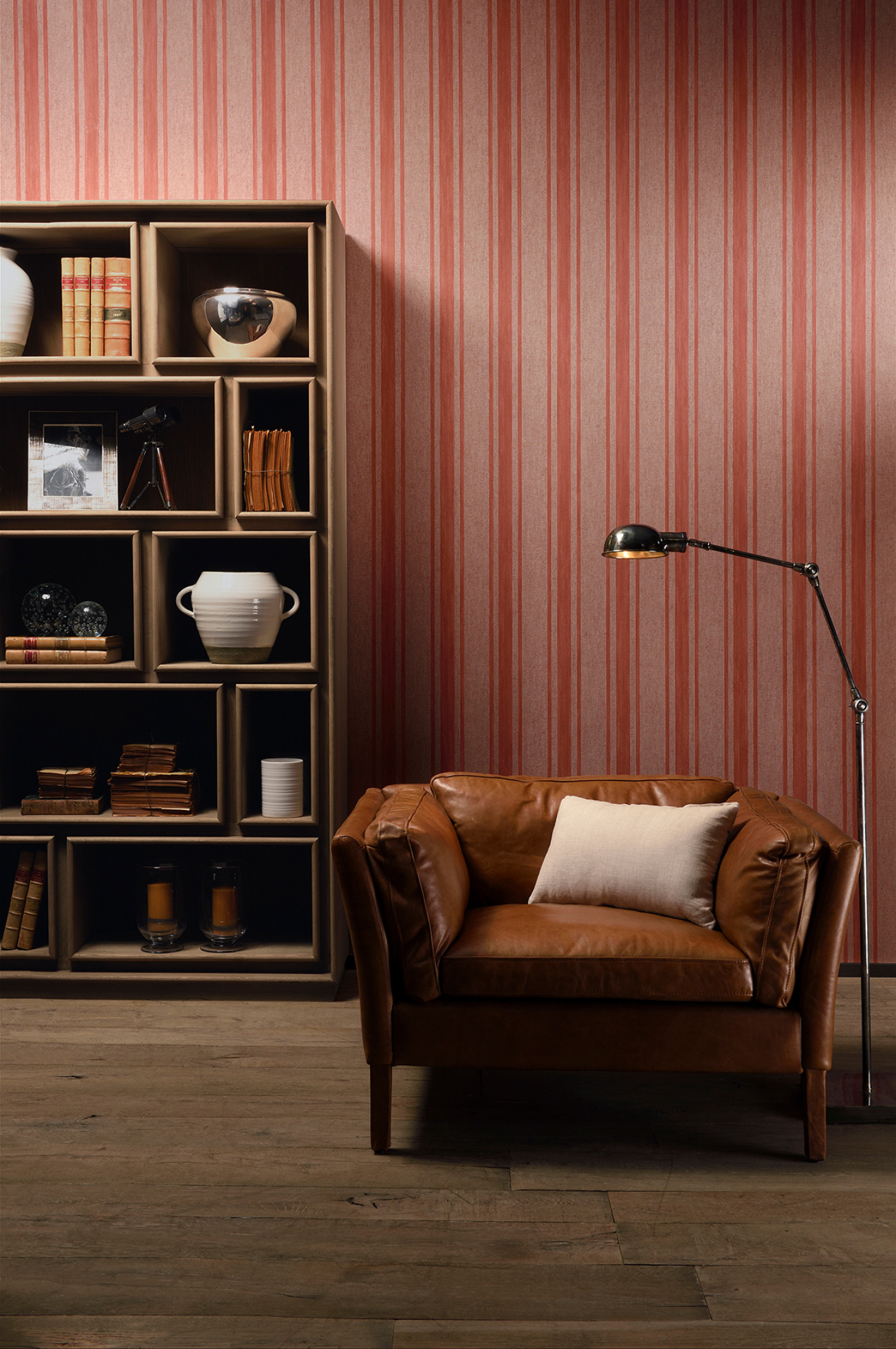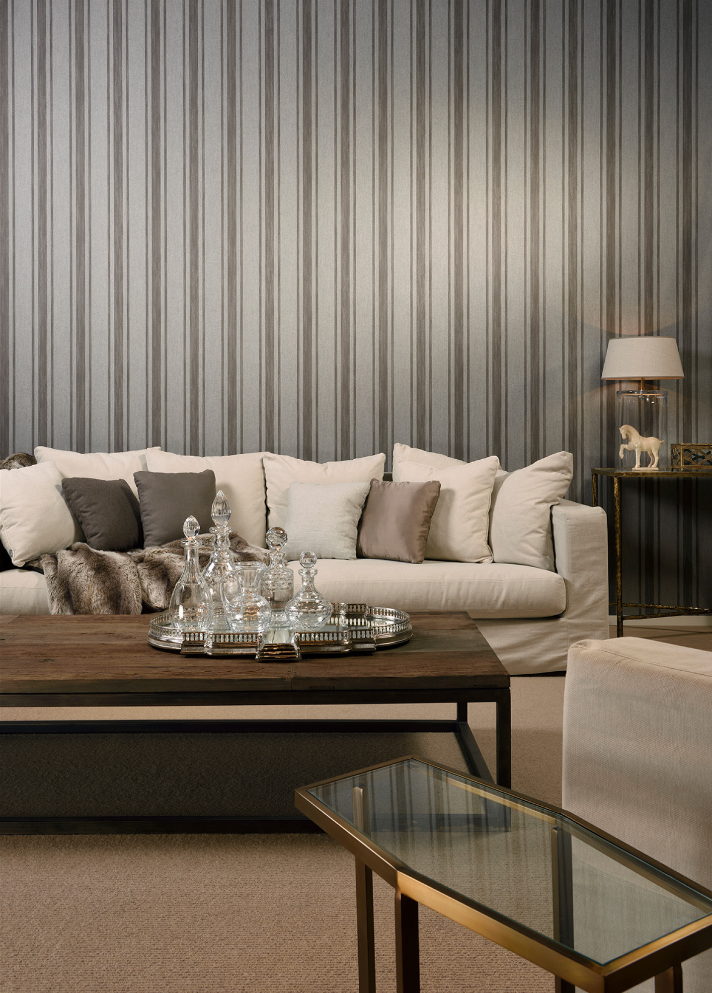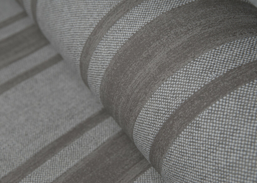 Wallpaper with a refined linen texture and a striped pattern in a variety of colour combinations, from subtle tone-on-tone creations to eye-catching contrasts.