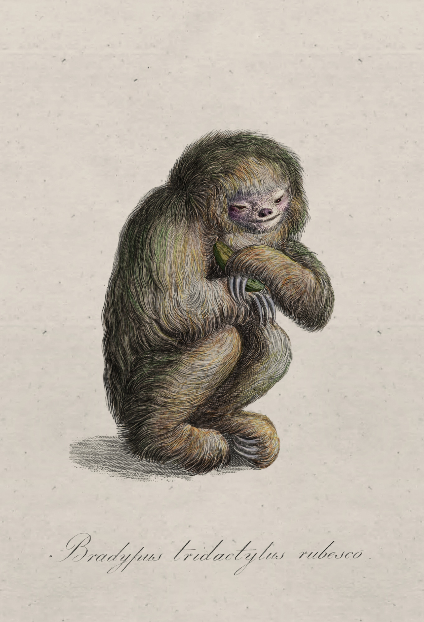 Printed wallcovering with a flock finish, resembling the beautiful fur of the Blushing Sloth, which lived its life so still and quiet that algae found a way of growing on the outer layers of their fur, giving them a breath-taking glow.