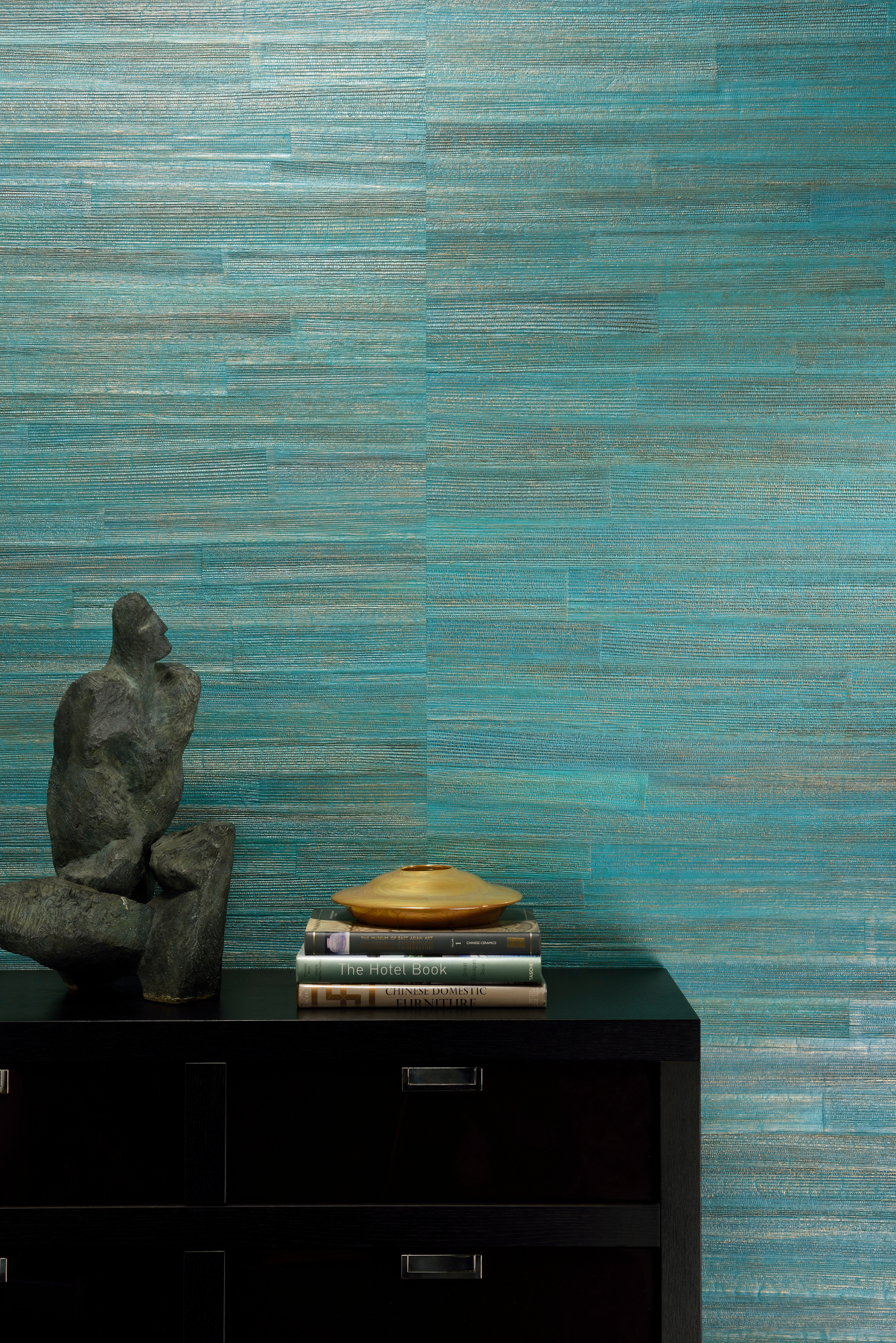 This pattern has its roots in one of the most exotic places in the world: the paradise that is the Philippines. One of the country’s greatest natural resources is the banana tree. We have used its bark to create this unique wallcovering. The wide, coloured strips are glued by hand to form a unique variegated texture.