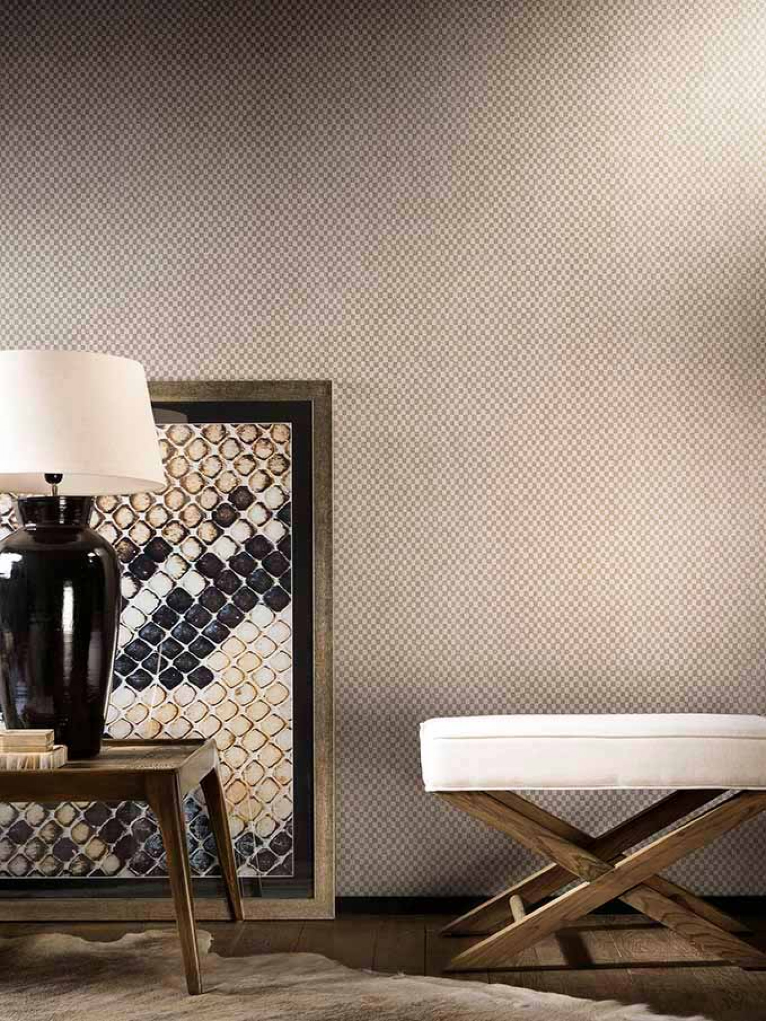 Damier has a uniform appearance from a distance, but close-up you will be overwhelmed by the multitude of squares in contrasting shades. The linen texture lends the print a very gentle and subtle look. The transitions are not quite perfect and this means the pattern is not too tight.