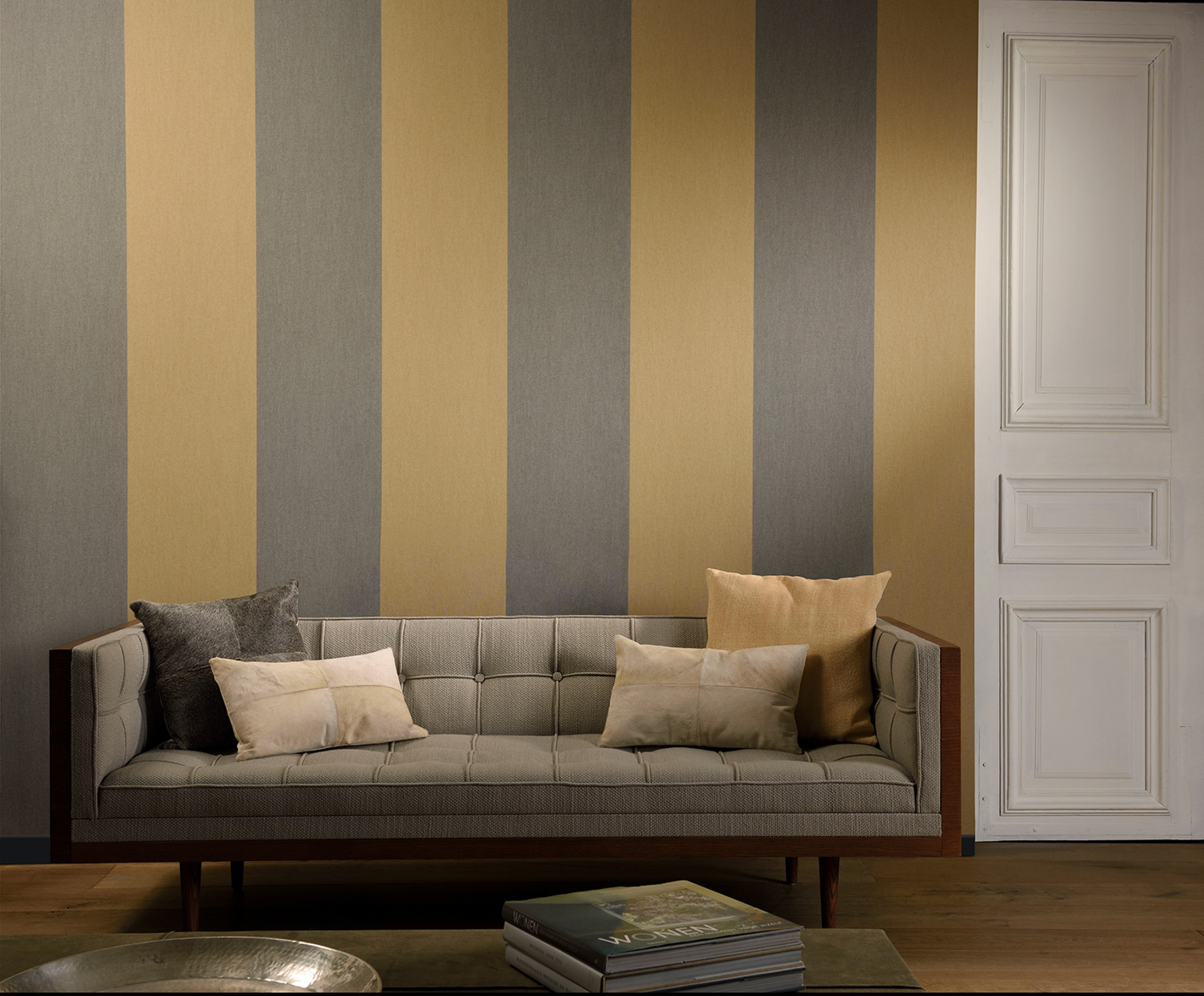 Wallpaper with a refined linen texture and a striped pattern in a variety of colour combinations, from subtle tone-on-tone creations to eye-catching contrasts.