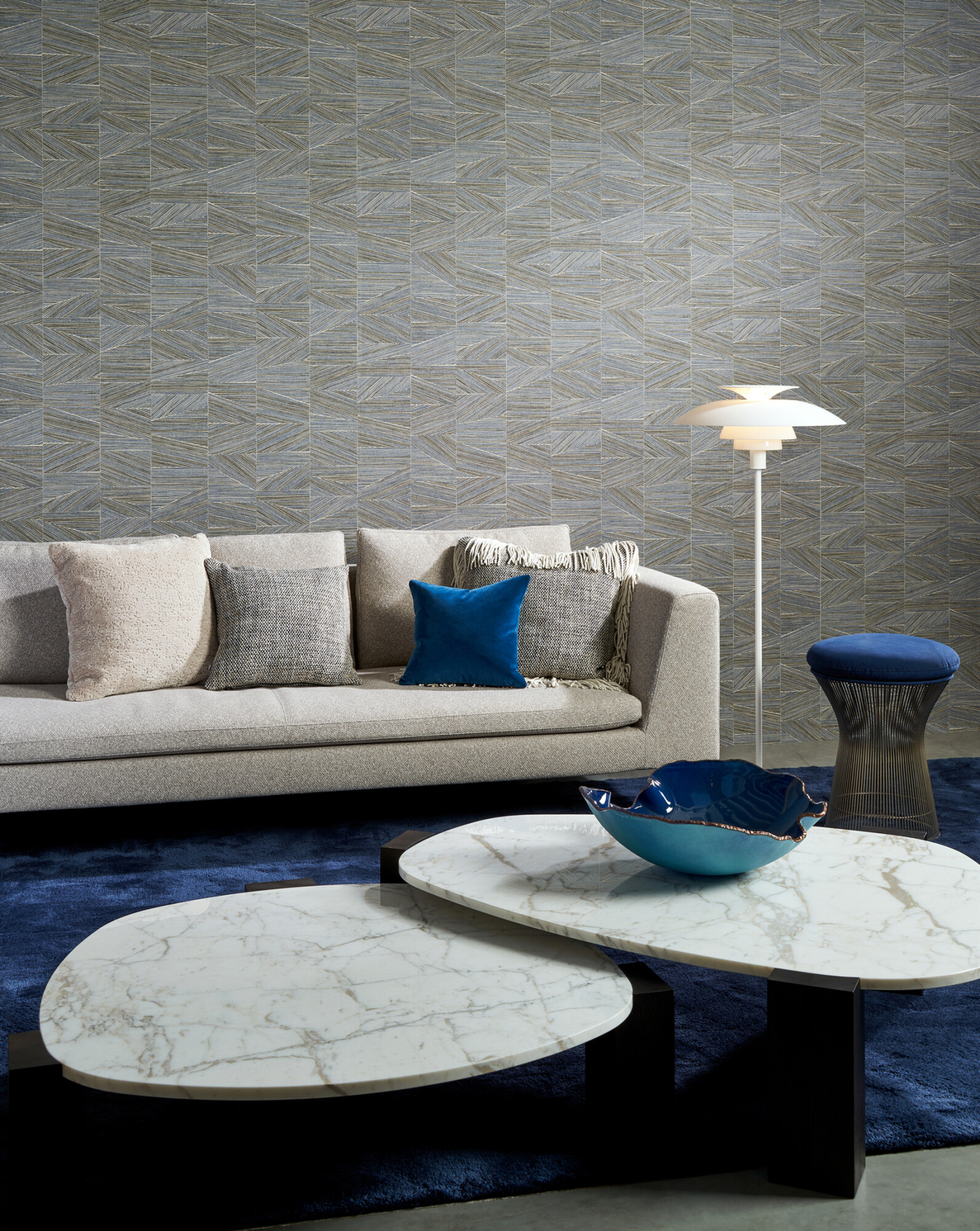Neatly stacked geometric shapes are pieced together like a perfect puzzle and yet this design somehow still succeeds in looking as if it has randomly been arranged. The combination of different planes and the rustic woven grass texture contrasts beautifully with the straight lines.