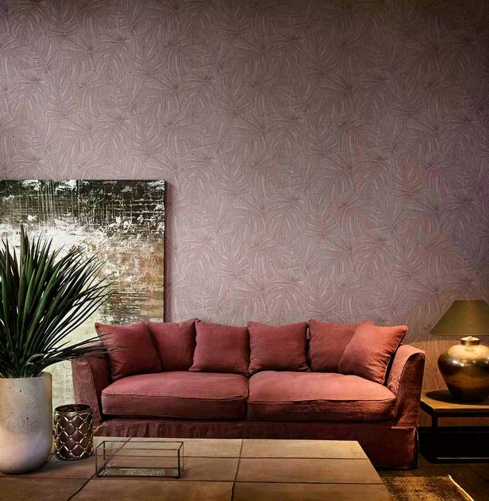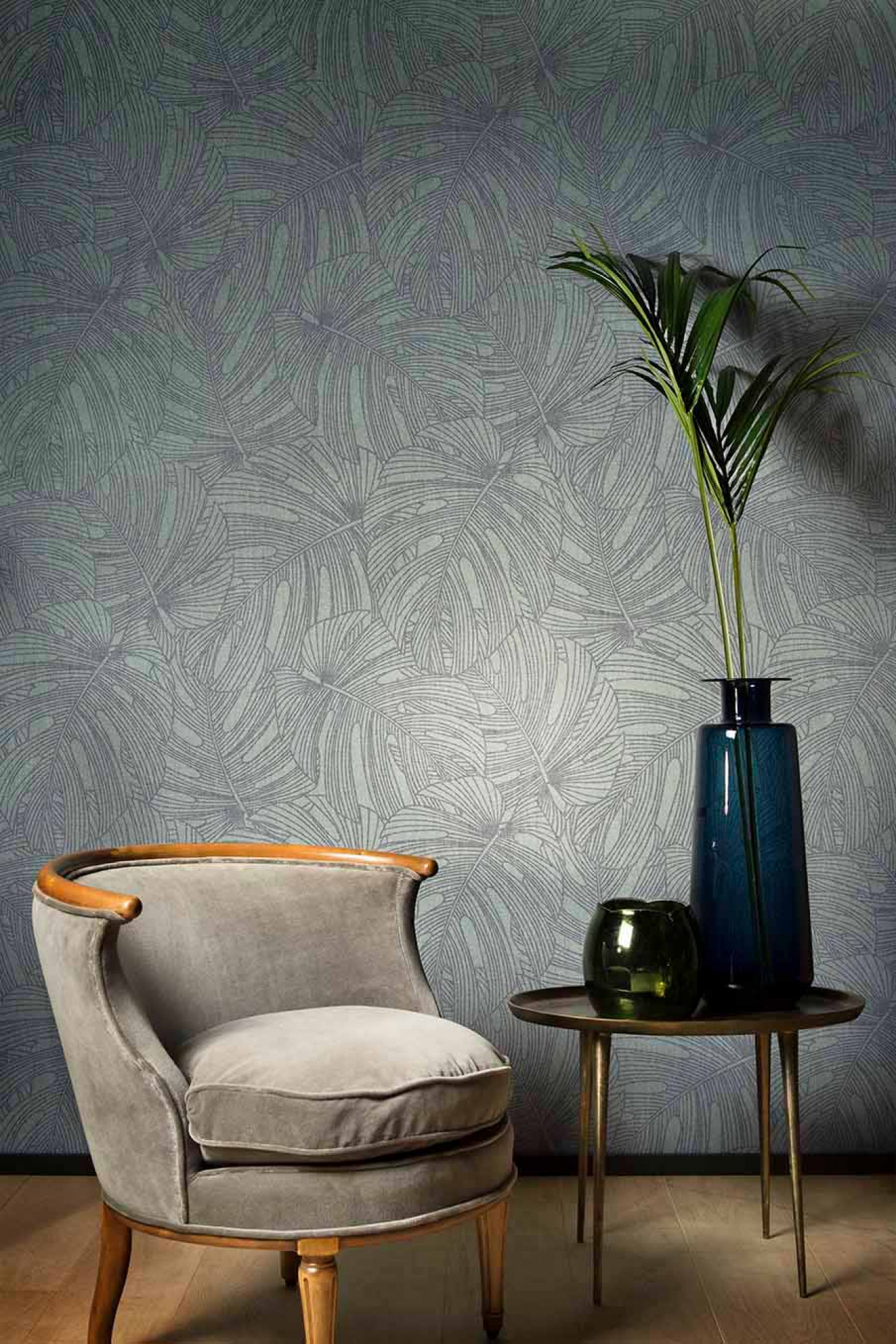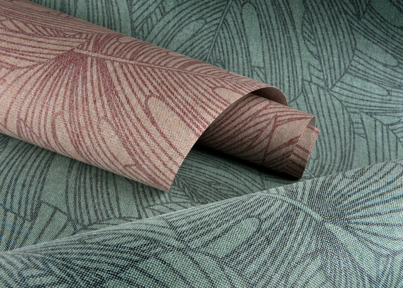 We remain in the tropical rainforest with L'Aventure. The large leaves on the pattern overlap each other, creating an interplay of lines with a surprising, dynamic effect. The veins of the leaves that cross one another, combine to create a print that is almost graphic.