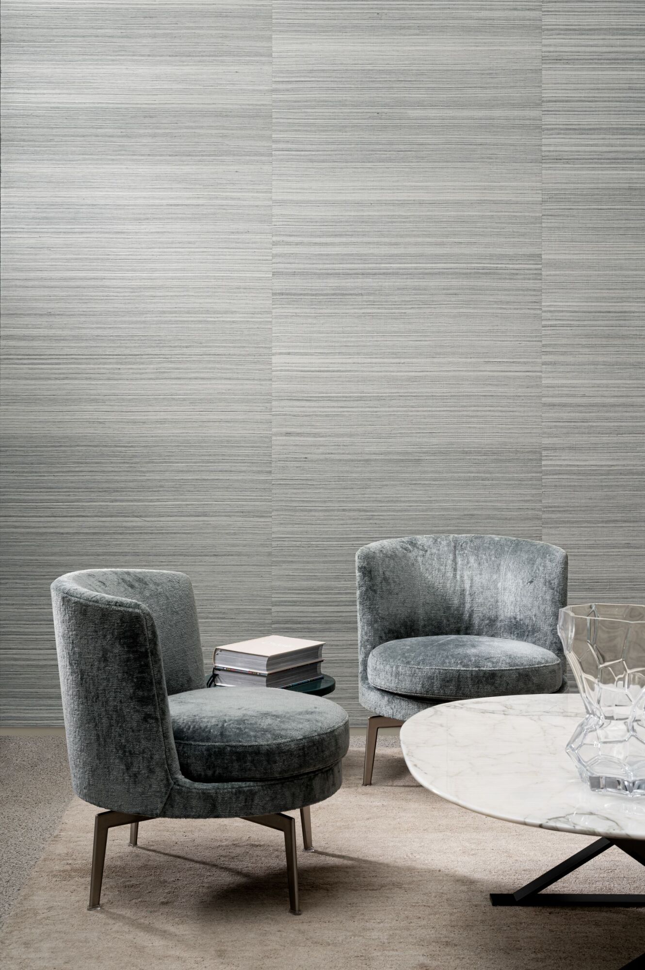 No striking patterns here, just a plain wallcovering that radiates peace and warmth. Line is made of sisal, a fine jute fibre, resulting in a pure wallcovering with many natural shades.