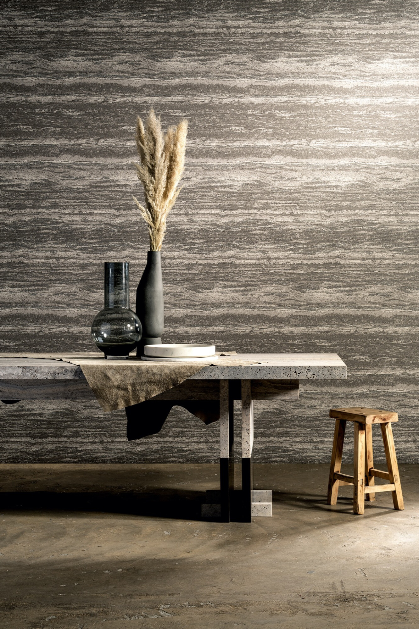 Lustro has a travertine or marble look. The different layers of stone are clearly visible as are the irregular pores which are typical of this material. The shimmer of minerals, the layering of stone and the imperfections unite luxury, roughness and purity.