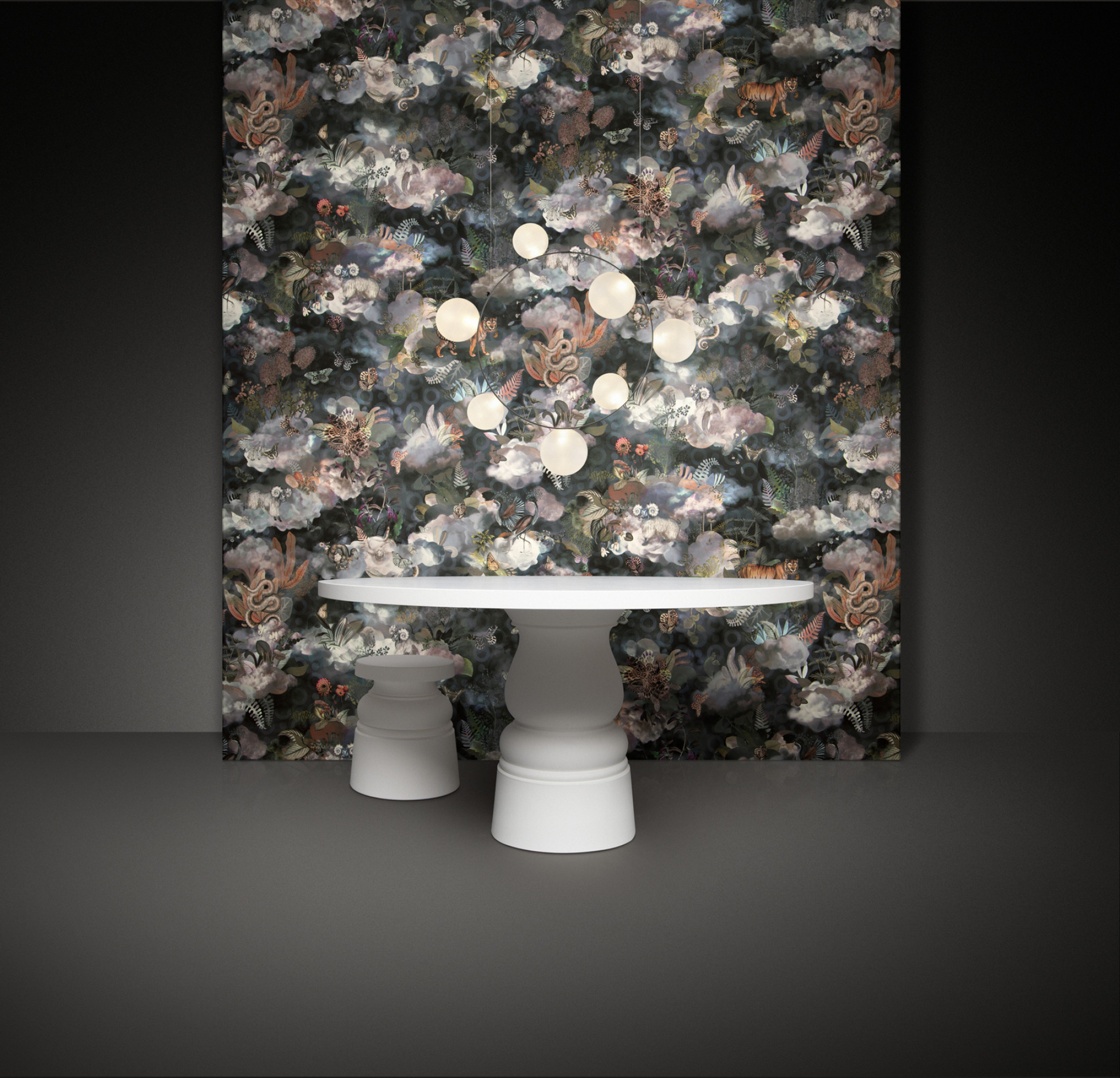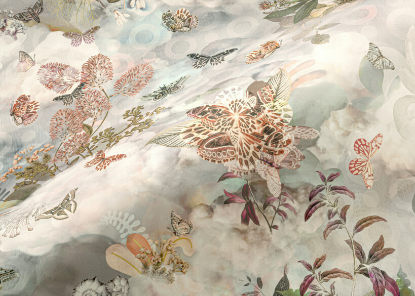 The Memento Moooi Medley Wallcovering is a gathering of Extinct Animals known for their unique kindness and love for life. Each animal knew how to cherish each moment of their lives and lived to make beautiful memories. Depicted amidst the softest of fluffy clouds, they continue their celebration of life. Or is it the afterlife? The Memento Moooi Medley is digitally printed on soft touch textile.
