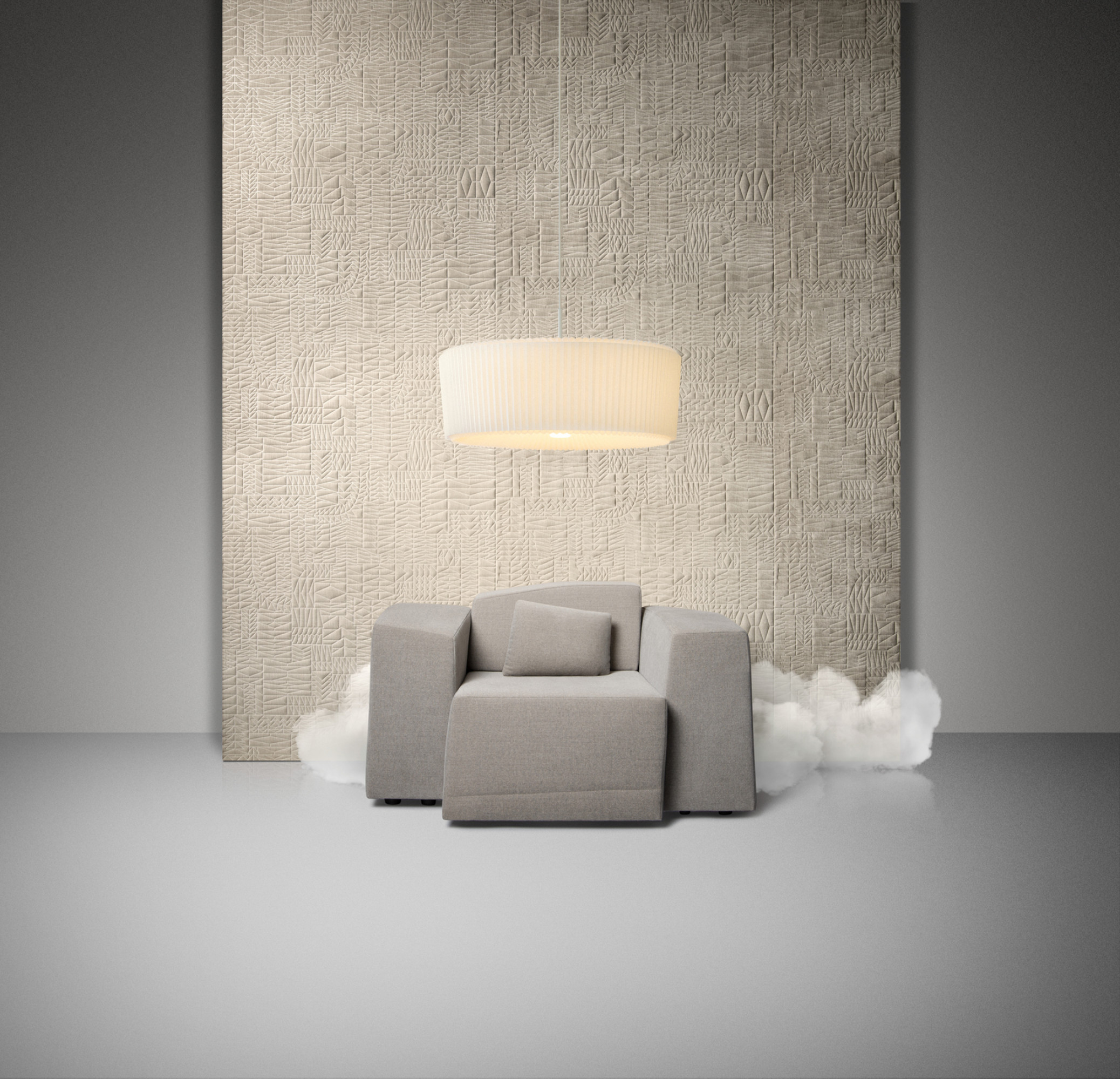 Description 3D wallcovering with a soft chenille fabric, inspired by the Goat’s yearly migration