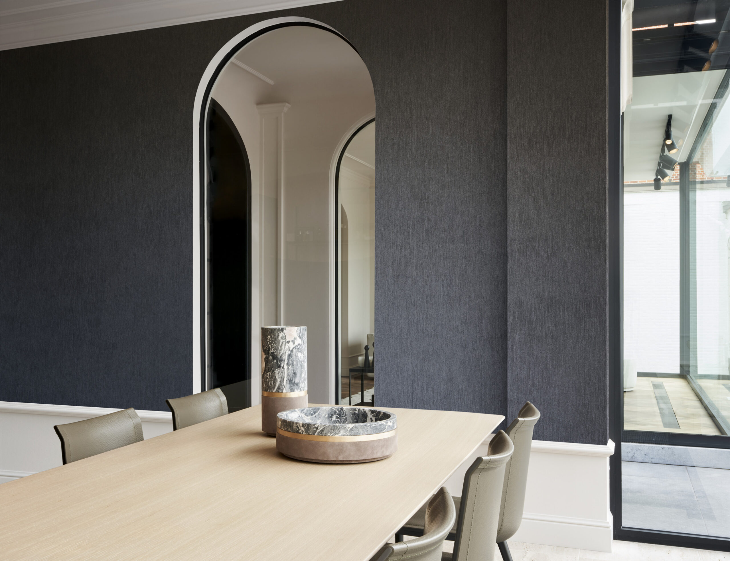 The fil-à-fil effect, which is woven into the core of the product results in a truly unique plain wallcovering. You can see this very well by looking at the back. This technique makes the textile effect on the wall very realistic.